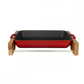 ПРЯМОУГОЛЬНОЕ БЛЮДО 26Х40 СМ И ДЕРЕВЯННАЯ ПОДСТАВКА ДЛЯ СЕРВИРОВКИ КРАСНОГО ЦВЕТА LAVA