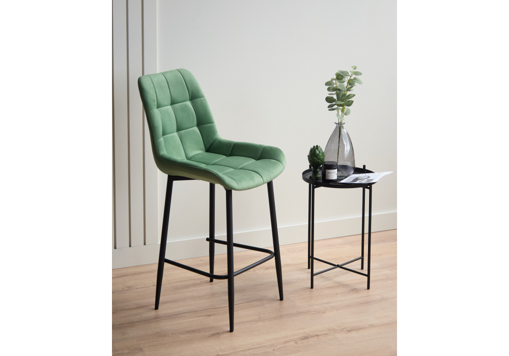 Материал каркаса - металл; Материал сиденья - велюр; Материал обивки - велюр; Цвет ножек - черный; Ширина - 50; Глубина - 58; Высота - 99; Ширина сиденья - 46; Глубина сиденья - 41; Высота сиденья - 63;