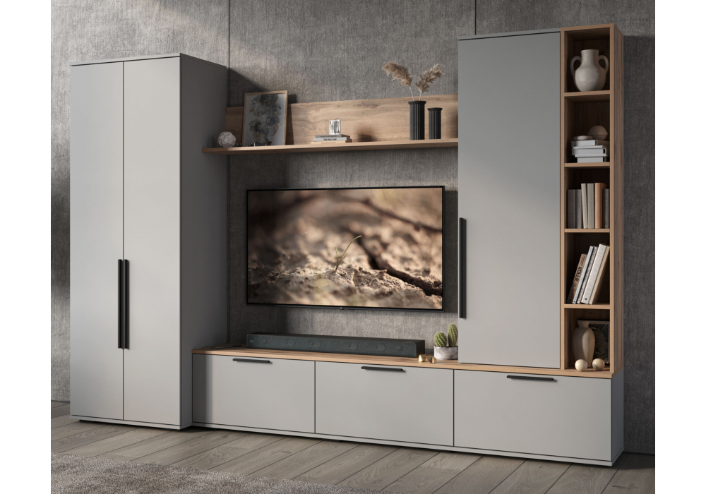 Купить "Готовая гостиная комплектация 1 Woodville Филеста шиншилла серая / дуб вотан 664940"