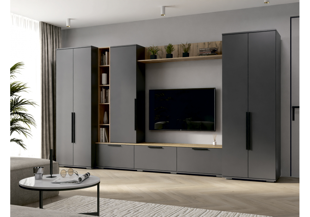 Купить "Готовая гостиная комплектация 2 Woodville Филеста графит / дуб вотан 664937"