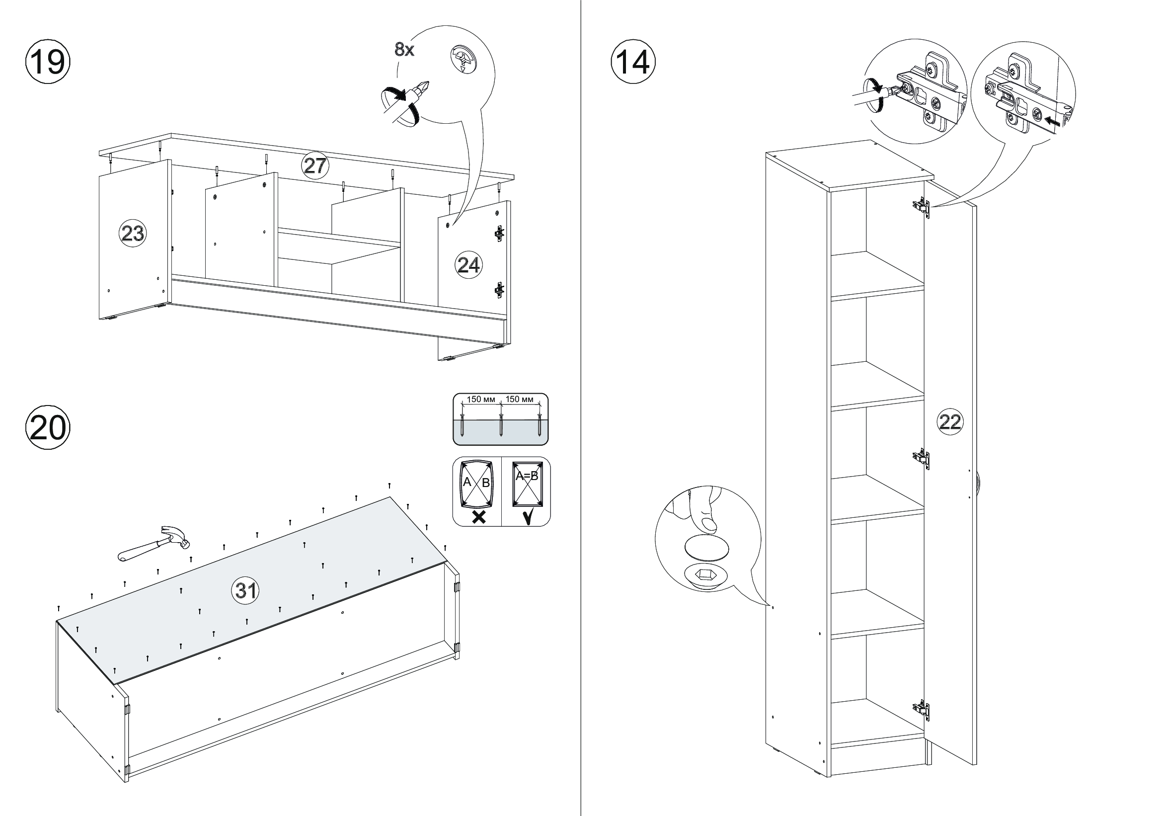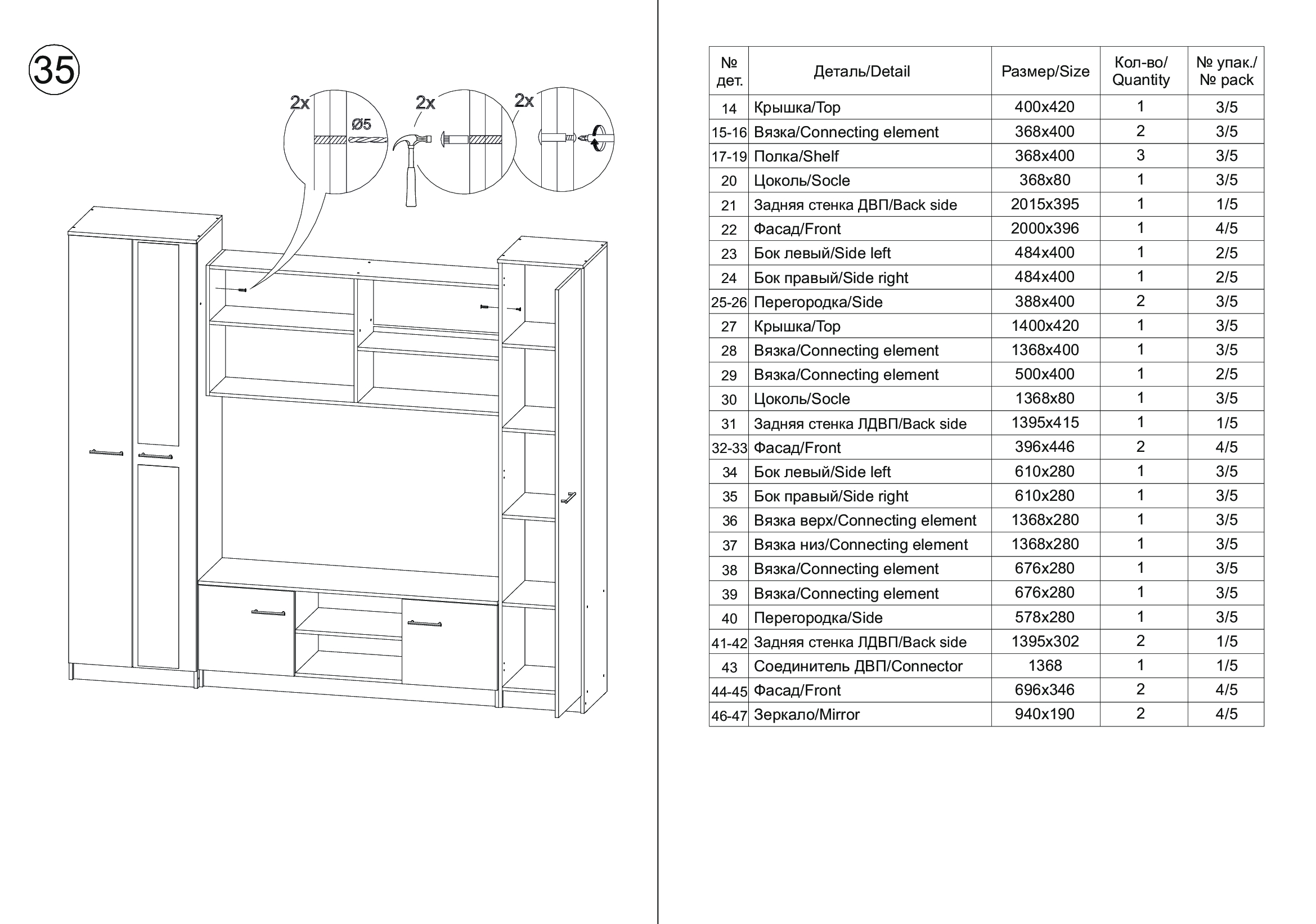 Размер ниши под ТВ: 140 х 83 см. Материал каркаса - ЛДСП; Цвет каркаса - Белый; Ширина - 240; Глубина - 45; Высота - 210;