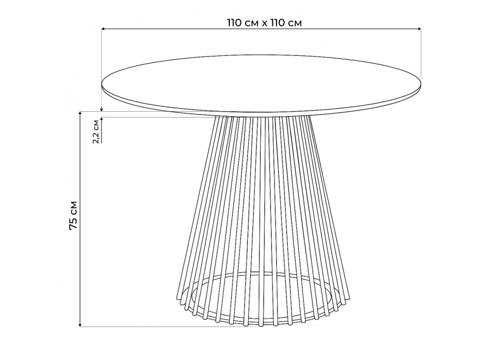 Материал каркаса - металл; Материал столешницы - Керамика; Цвет ножек - черный; Ширина - 110; Высота - 75; Длина - 110;