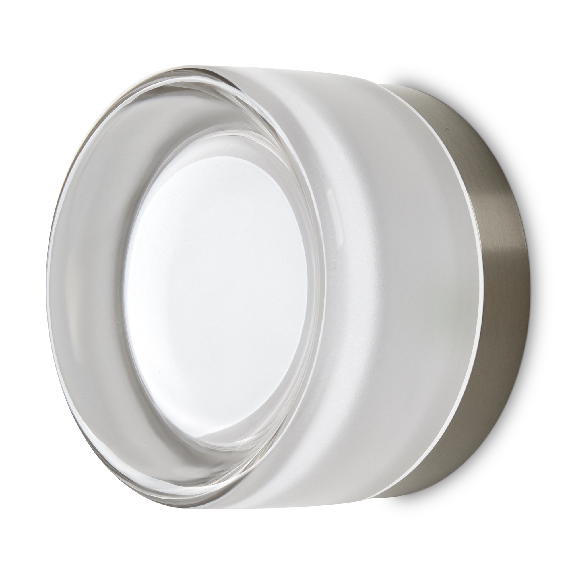 Металлическая арматура в цвете никель в трех рельефных основаниях. Плафоны, выполненные в приглушенно пшеничном и янтарном оттенках, доступны в двух размерах. LED источник света 2400К/2550К/3000K.