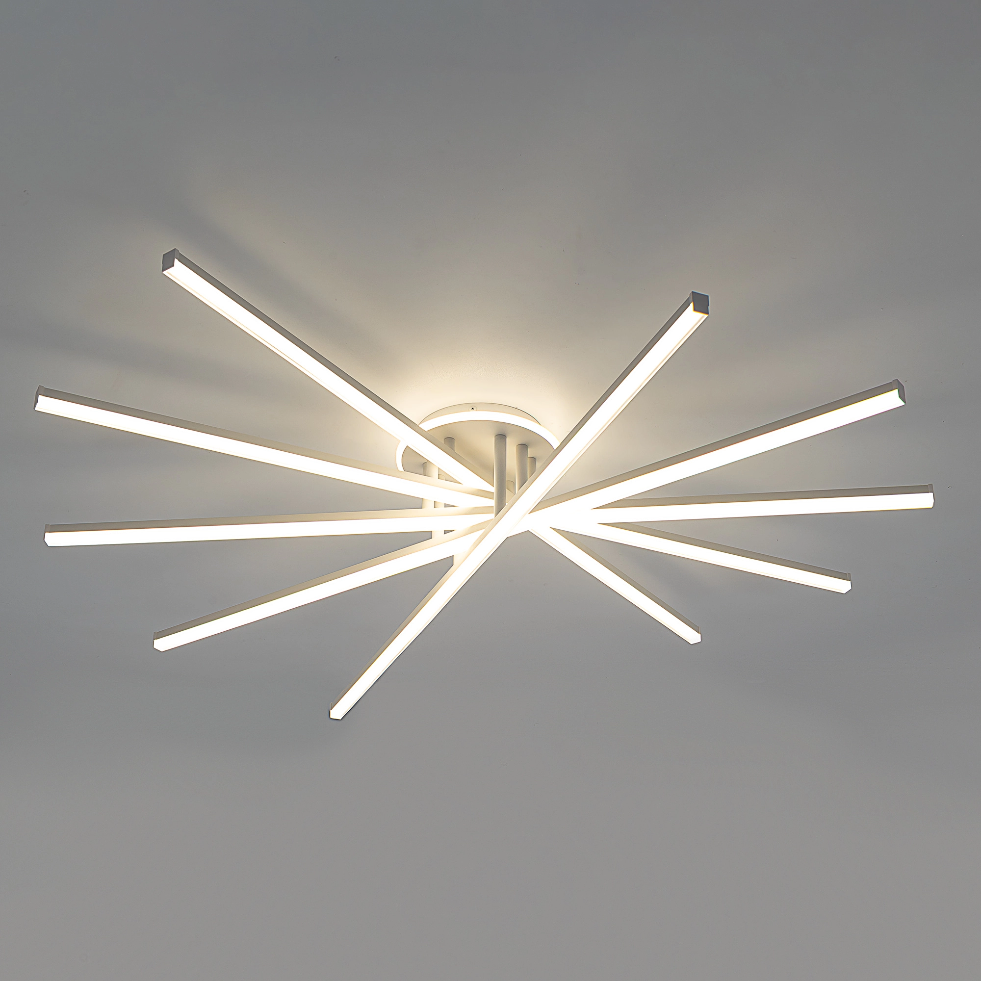 При помощи инфракрасного пульта можно плавно регулировать яркость освещения и цветовую температуру света, настраивая модель так, как вам комфортно. Есть также режим ночника, а также память последнего режима. Можно сохранить любимые режимы освещения (до 4-х штук) и переключать их при помощи простого выключателя на стене. Мощность люстры — 150 Вт, ее можно установить на любой потолок (включая натяжные).