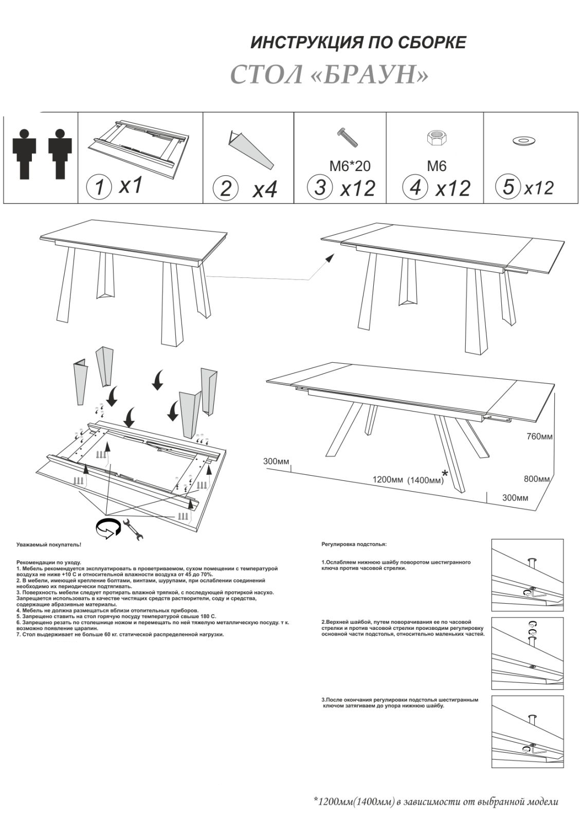 - Длина стола в разложенном виде: 1800